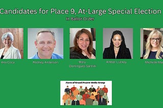 Early Voting Begins Today for Grand Prairie Place 8 Election. Read the candidates’ written responses to the community’s top five questions—published…