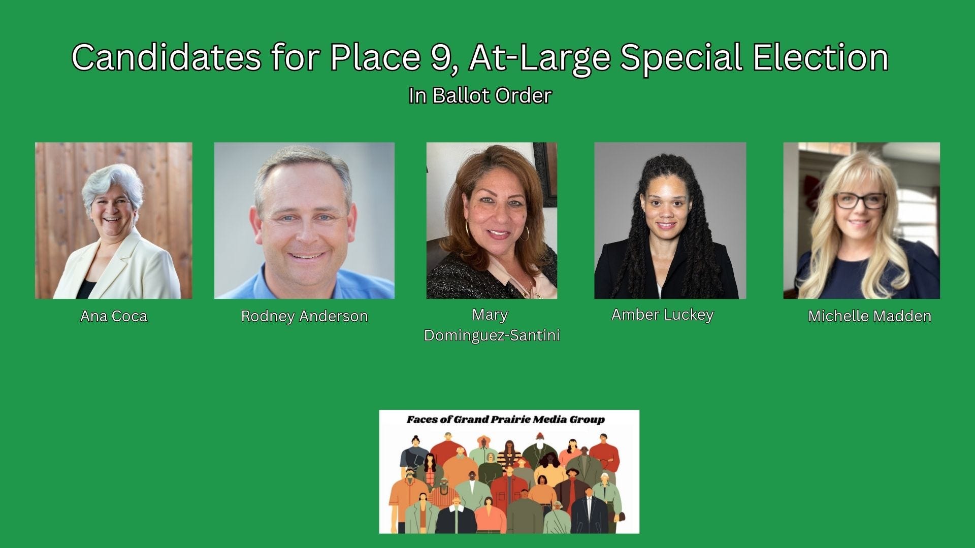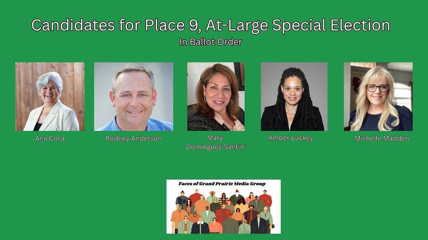 In December 2025, Faces of Grand Prairie Media Group conducted an online survey asking residents what questions they would most like addressed as election season approaches. The top five responses were developed into official questions for the candidates in the Special Election for City Council Place 8 (At-Large). This council district encompasses the entire city, regardless of county, so any registered voter in the city of Grand Prairie may vote in this election.