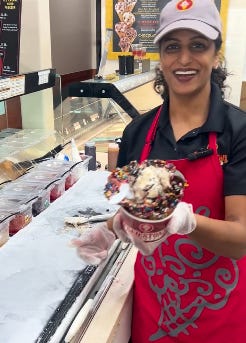 Signature Ice Cream Creations: From a stirring tour of the famous frozen granite slab to the much-loved Coffee Ice Cream—a signature flavor that even snagged the #1 spot in a Food Republic taste test—Sangeetha shows how they make magic happen.