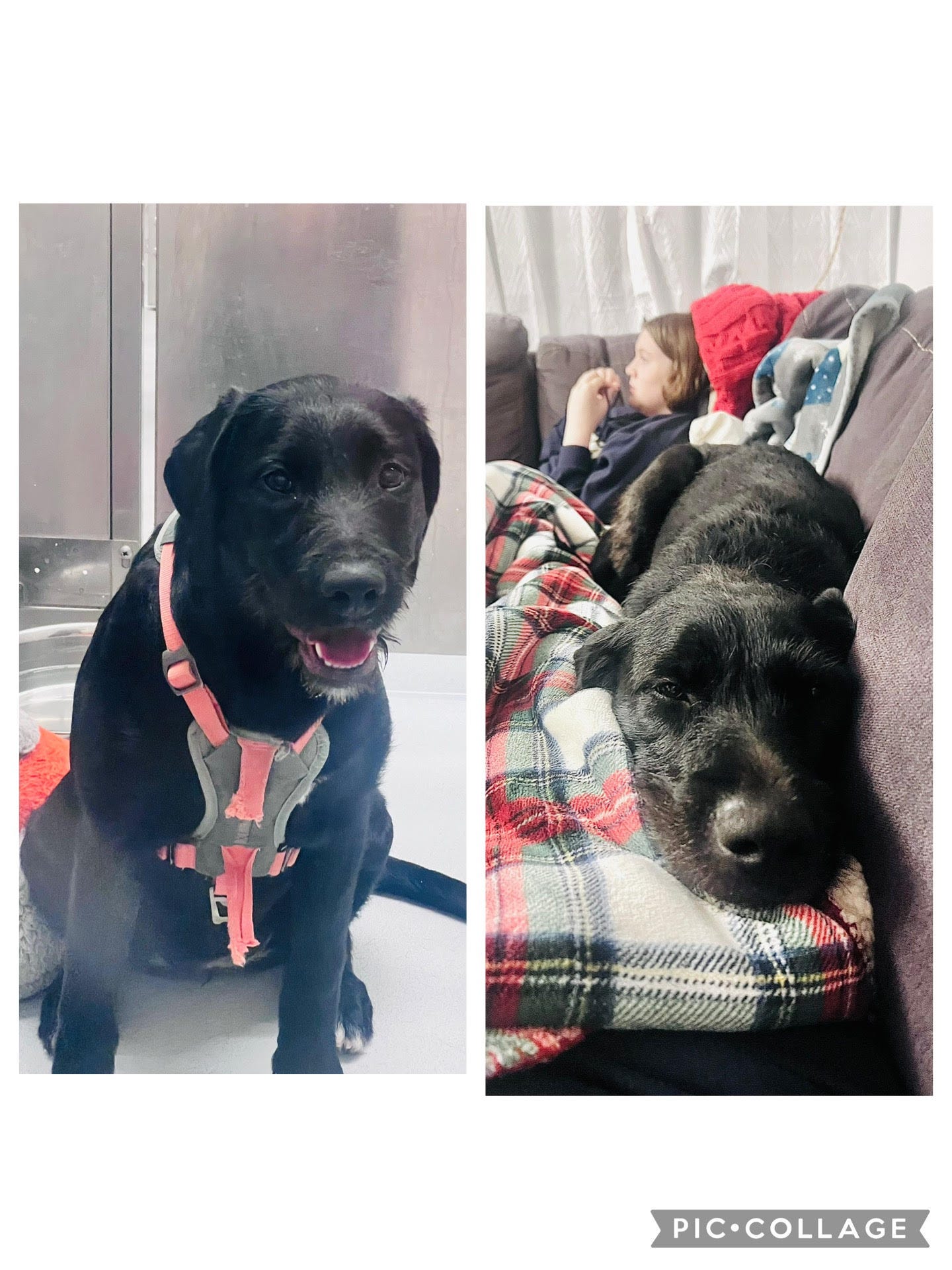 First up is my sweet girl Bailey, who I adopted from our beloved Prairie Paws in January 2024. After my sweet Bella passed away in November 2023, I swore I’d never get another black lab—it just felt too sad. But one day I felt drawn to the shelter, and there sat Bailey, waiting for me.