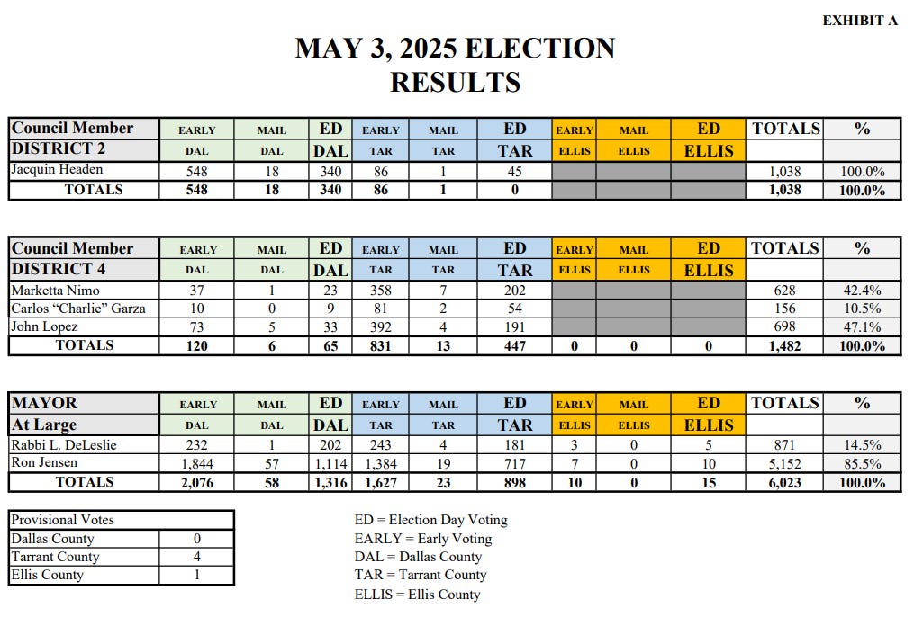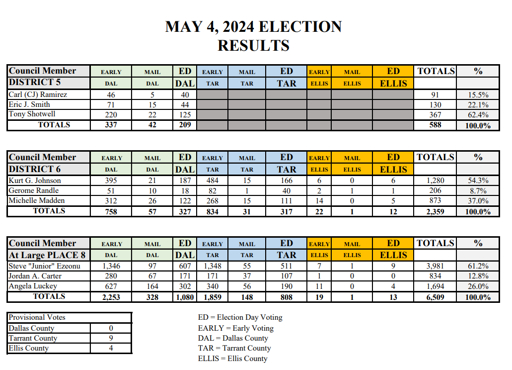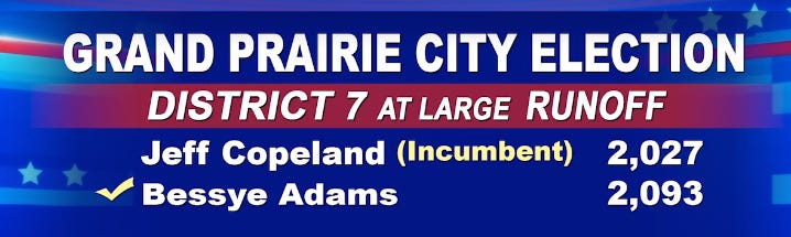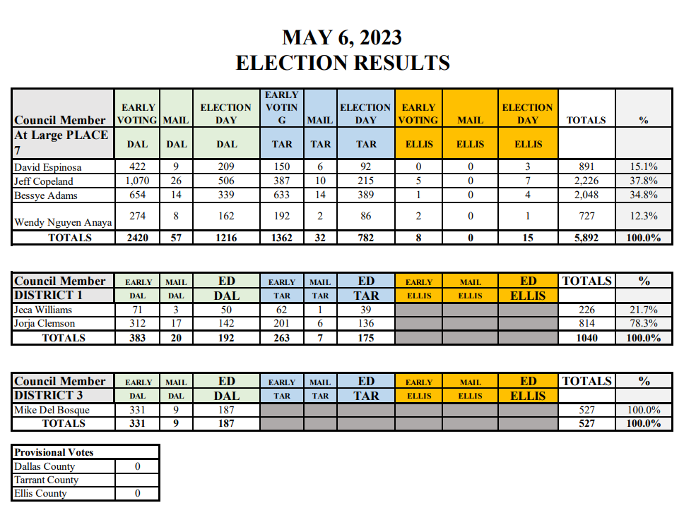 Past Three Year’s Election Results (Gathered from the City of Grand Prairie’s website).