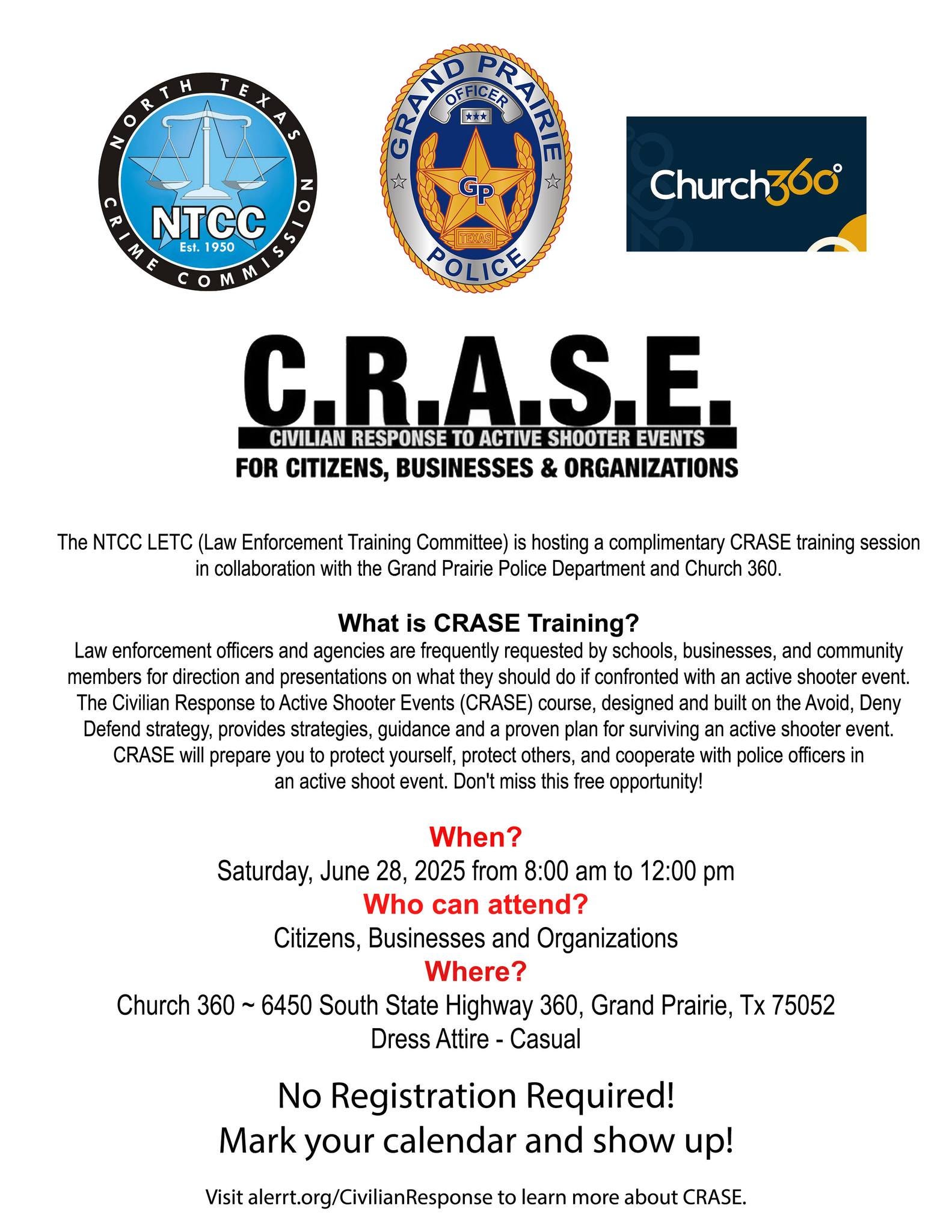 The Grand Prairie Police Department made an announcement on their Facebook Page about the upcoming Citizens Response to Active Shooter Events (C.R.A.S.E.) training class.