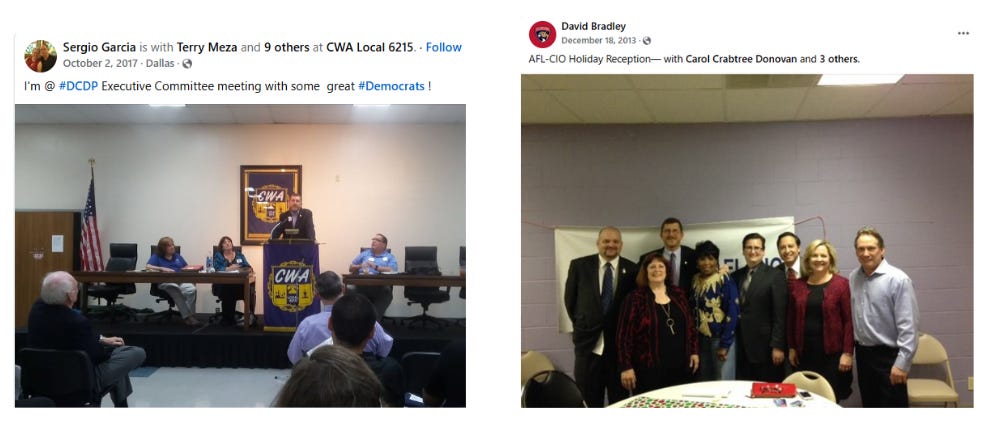 According to their Facebook accounts, Carol Donovan and David Bradley, along with his wife Susan, have been long-time Democrat political activists and have served together in various capacities for over 10 years.